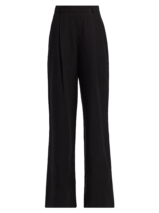 Hailey Pleated Cotton-Blend Wide-Leg Trousers