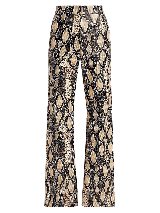 Gaia Snakeskin-Embossed Vegan Leather Pants