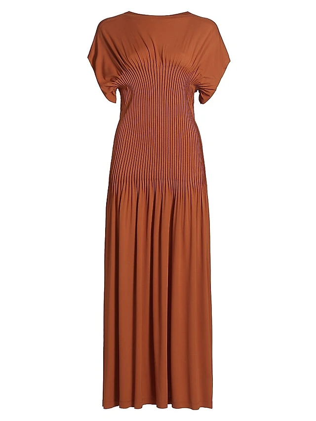 Embroidered-Floral Plissé Tulle Maxi Dress