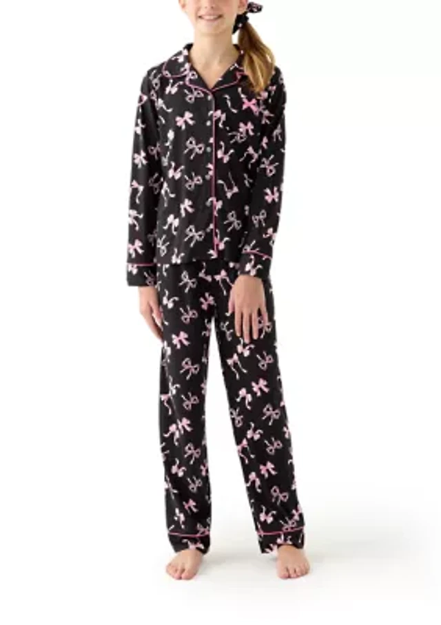 Unisex Big Kid Holiday Bows & Wreaths Notch Collar Pajama Set