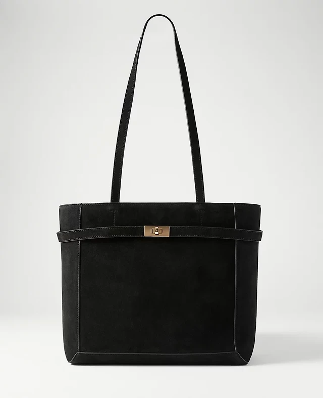 Ann Taylor Croco Belted Bucket Bag Black Women's