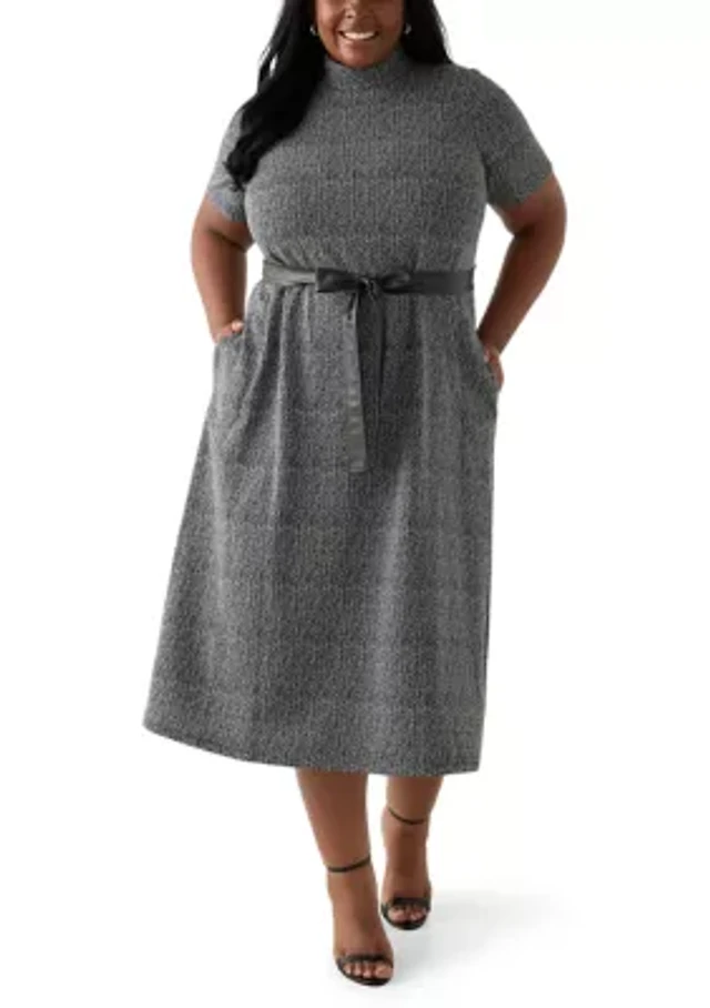 Plus Multi Print Sleeveless Wrap Dress with Buckle