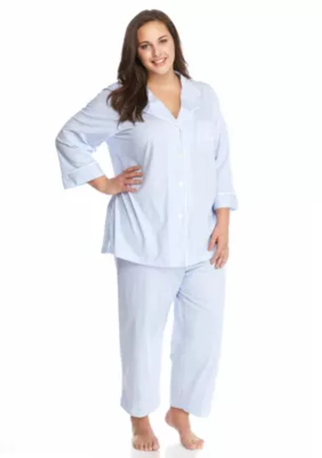 Plus 3/4 Sleeve Classic Notch Collar Capri Pajama Set