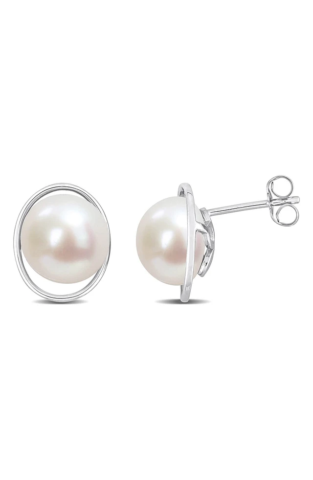 Sterling Silver 9.5-10mm Freshwater Cultured Pearl Stud Earrings