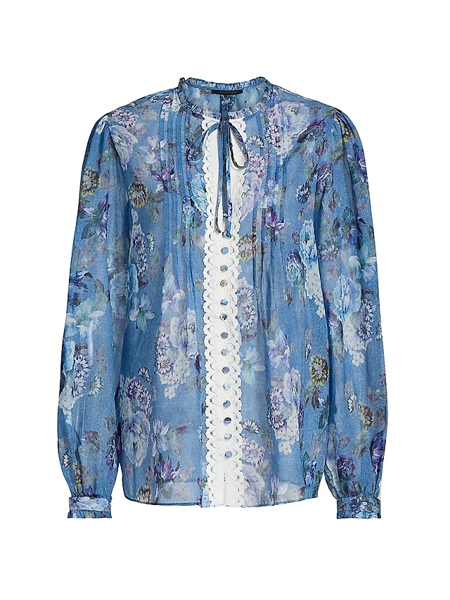 Seychelle Floral Cotton Eyelet Crop Blouse