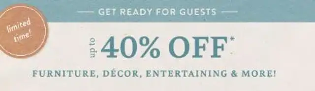 Up to 40% Off Furniture, Decor, Entertaining & More